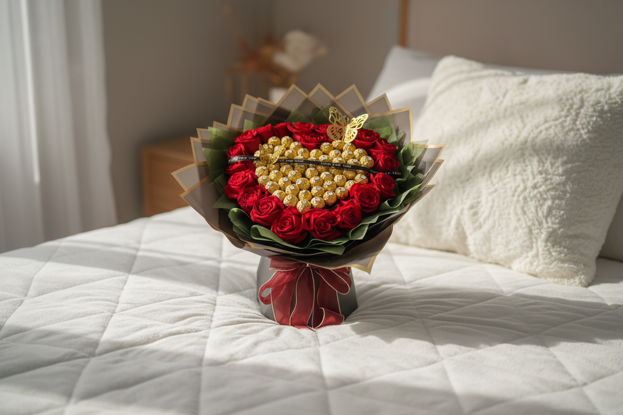 XOXOXO Red Rose and Ferrero Rocher Bouquet/ Fresh Cut Flowers