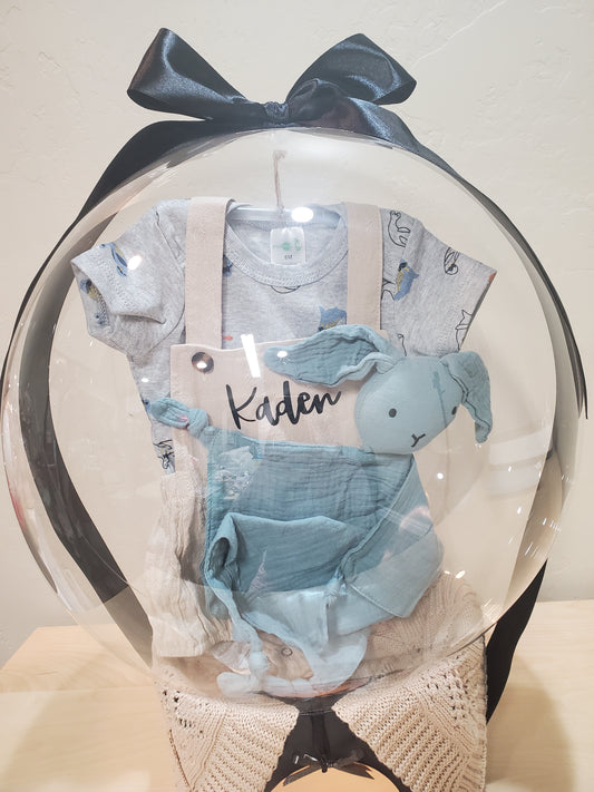 Personalized Baby Shower Gift - Stuffed Animal, Baby Outfit and Blanket Balloon Bundle