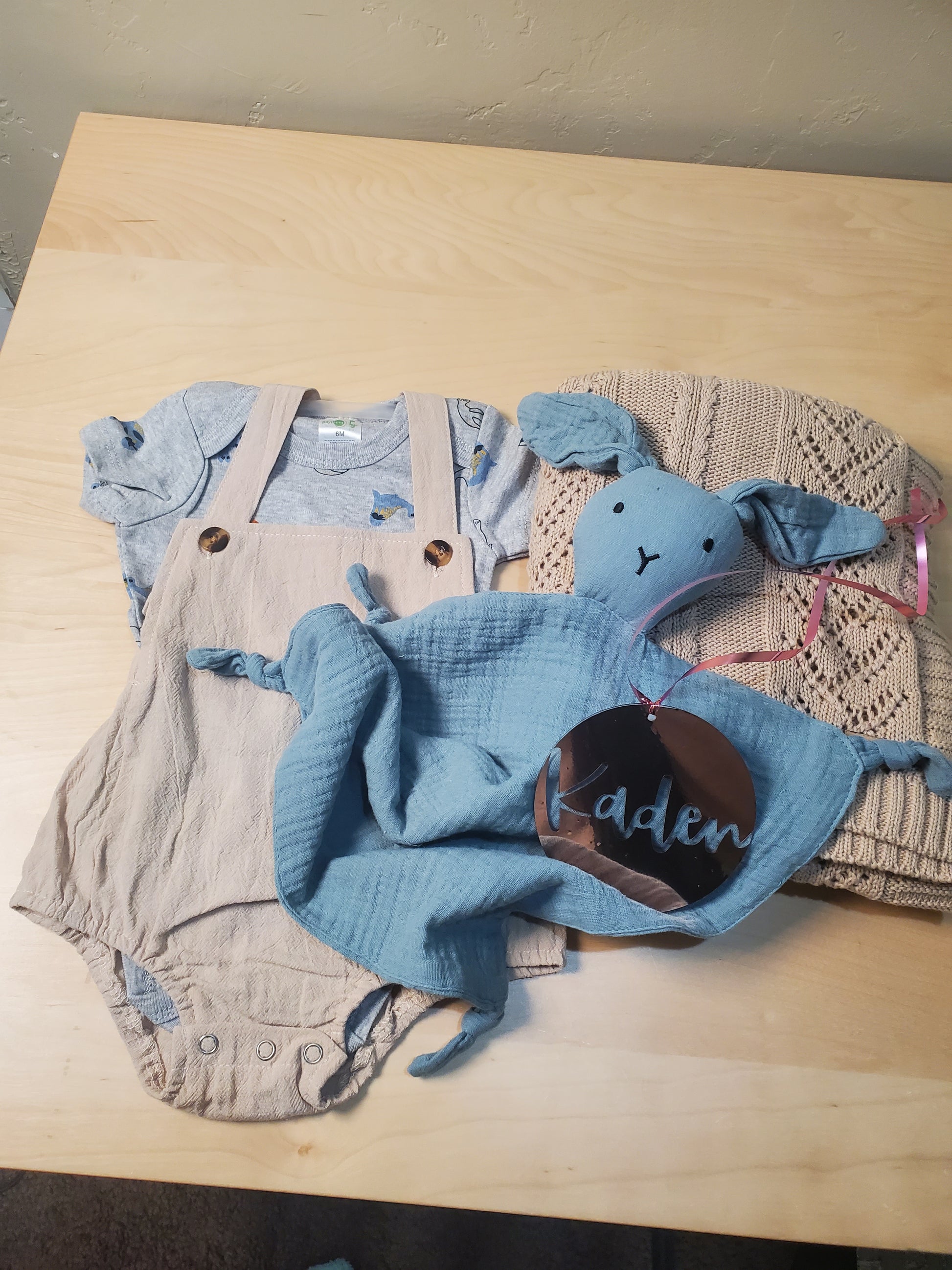 Our gorgeous baby outfit balloons make the perfect gift for any new arrival. The size of our outfits are newborn to 3 months, and carefully suspended within the balloon with a stuffed animal and blanket.